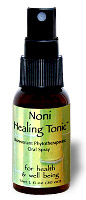 Noni Healing Tonic is an oral spray that balances the bodies normal operating functions and promotes health and well being. It is made from five of the most powerful anti-inflammatory herbs and spices: Noni Fruit (Morinda Citrifolia), Ginger Root (Zingiber officinalis), Cinnamon (Cinnamomum Zeylanicum), Turmeric Root (Circuma Longa), and Rosemary (Rosmarinus Officinalis). These herbs are distilled and blended to create a propriety formulation specifically designed to reduce inflammation and stimulate the immune system.
